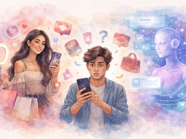 When we look at India’s digital world today, consumer decisions are shaped by three different forces working together.Influencers introduce products and show how they work in real life. They make products feel relatable and exciting.AI algorithms decide which content people see. They personalize feeds and advertisements based on user behavior.Social Circles Friends, reviews, and online communities help confirm whether a product is actually worth buying.